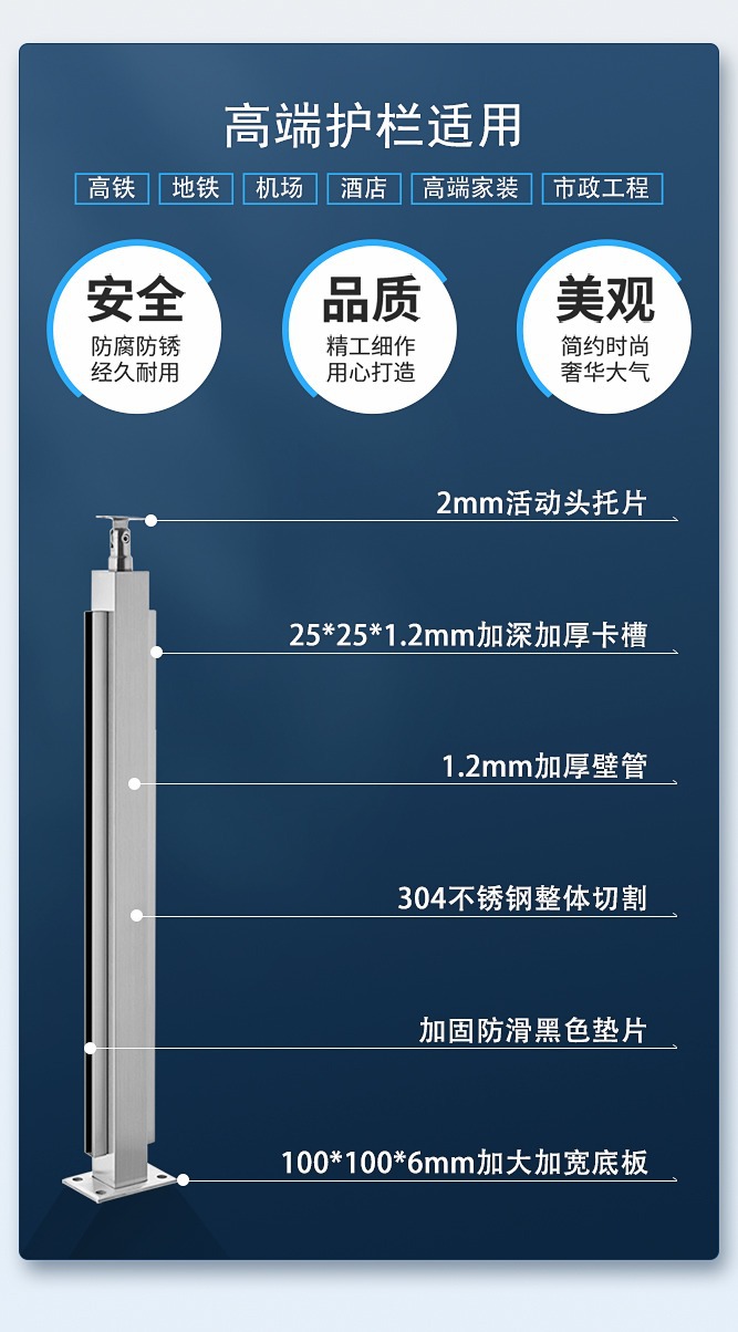 栏杆高度(一般在 900mm-1200mm之间,具体规格可按用途设定)